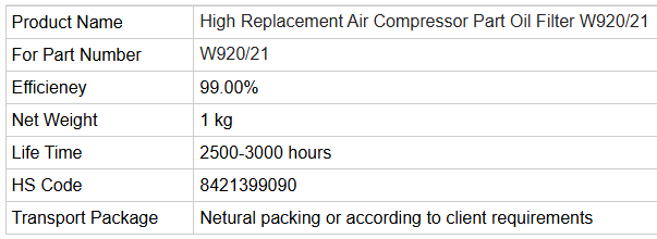 W920/21 filter element replacement is built with the highest quality materials and workmanship. This oil filter element offers equal to or better filtration performance based on the original OEM filter specifications.